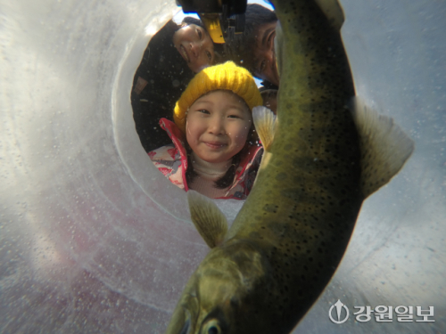 ■ 축제의 킬링 콘텐츠, 산천어 체험=산천어축제의 대표 콘텐츠는 산천어 체험이다. 산천어는 용존 산소량이 9ppm 이상인 1급수 맑은 물에서 서식하는 냉수성 토종 연어과 물고기다. 축제장에서는 얼음낚시와 맨손잡기를 통해 산천어와 조우할 수 있다. 예약을 통해 체험할 수 있고, 예약을 하지 않았더라도 현장 낚시터를 이용할 수 있다. 낮에 산천어와의 조우에 실패했다면 밤낚시를 노리면 된다. ‘이한치한 산천어 맨손잡기’도 화천에서만 만날 수 있는 이벤트다. 매년 10만 명 이상 방문하는 외국인들을 위해 전용 낚시터도 마련된다.