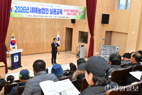 2026년 화천군 새해 농업인 실용교육이 지난 12일 군농업기술센터에서 최문순 군수를 비롯해 외국인 계절 근로자 고용주 150여 명이 참석한 가운데 열렸다.