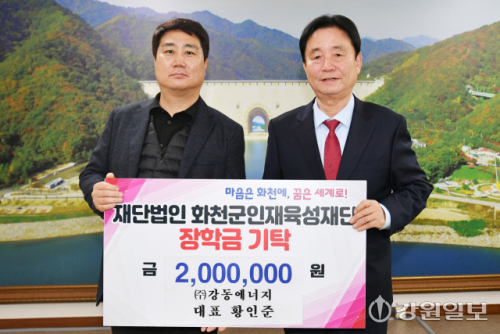 (주)강동에너지(대표:황인준)는 지난 12일 최문순 화천군 인재육성재단이사장을 방문해 장학금 200만원을 기탁했다.