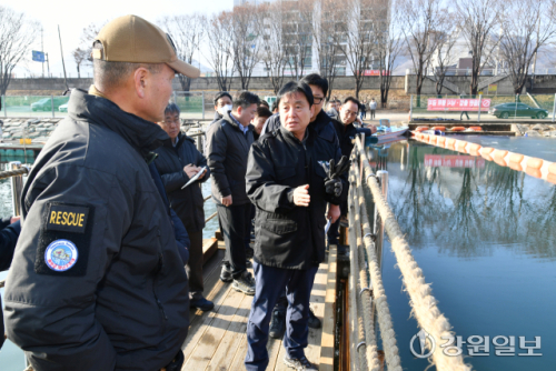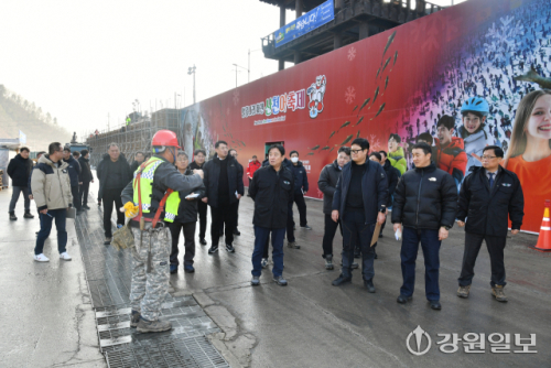 최문순 화천군수와 안중기 화천부군수, (재)나라 관계자, 각 실·과·소장 등 축제 관계자들은 지난 11일 화천산천어축제장 일대에서 현장 점검을 실시했다.