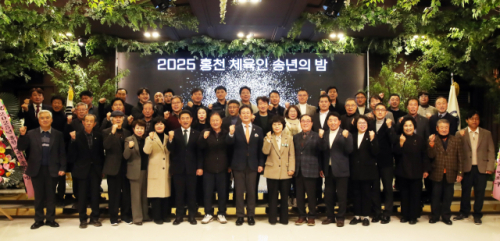 홍천군체육회(회장:신은섭)는 11일 크리스탈컨벤션웨딩홀에서 신영재 군수, 양희구 도체육회장, 최이경 부의장과 종목 단체장, 선수 등 300여명이 참석한 가운데 2025 홍천 체육인 송년의 밤을 개최했다. 이날 국내, 국제 대회에서 선전하며 홍천 체육의 우수성을 알린 공로로 조용현 웨이크보드 선수(경희대), 최준영 태권도 선수(양덕중) 등 19명의 선수 및 지도자가 홍천군 체육진흥기금 운용 관리 조례에 따라 격려금을 지원 받았다.