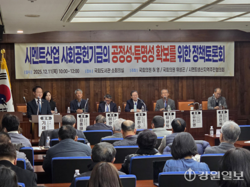 더불어민주당 허영(춘천갑) 의원과 위성곤(제주 서귀포) 의원, 시멘트생산지역주민협의회가 11일 국회도서관에서 '시멘트산업 사회공헌기금의 공정성·투명성 확보를 위한 정책토론회'를 연 가운데 강릉, 동해, 삼척, 영월, 충북 제천, 단양 등 시멘트 생산 지역 주민 150여명이 국회에서 열린 토론회에 참석, 뜨거운 관심을 보였다.