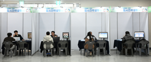 이날 인제지역 고교 1년생 130명과 학부모들이 인제문화원 2층 대강당과 1대1 상담부스를 가득 메웠다. 특히 인제 입시전략 설명회는 올해 행사 중 가장 많은 14개의 일대일 상담부스가 마련돼 맞춤형 학습전략 상담을 제공했다.