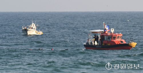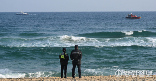 17일 강릉시 경포해변 인근에서 80대 노인이 실종돼 해경과 소방 당국, 군 당국 등은 경비 함정과 연안 구조정, 헬기 등을 동원해 이틀째 수색 작업을 하고 있다. 강릉해양경찰서와 소방 당국에 따르면 지난 16일 오후 1시 41분께 경포해변 인근에서 사람이 바다에 빠졌다는 신고를 접수했다. 인근 폐쇄회로(CC)TV 등을 살펴본 해경은 실종자가 수도권에서 같은 날 실종 신고가 접수된 80대 A씨임을 확인했다. 강릉=권태명기자