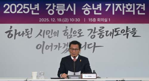 김홍규 강릉시장이 19일 시청에서 송년 기자회견을 열고 민선 8기 주요 성과를 되돌아보고 내년도 시정 운영 방향을 발표했다.