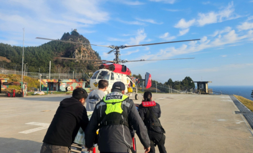 신고를 접수한 동해해경청은 울릉도·독도 인근에 강풍주의보가 발효된 가운데 포항회전익항공대 헬기를 이용해 울릉도에서 환자와 의료진을 탑승시켰다.