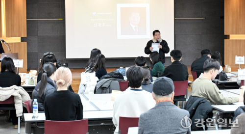 신경호 교육감이 20일 춘천 KT&G 상상마당 스테이에서 열린 2025 강원학생기자단 성과보고회에서 인사말하고 있다. 신세희기자