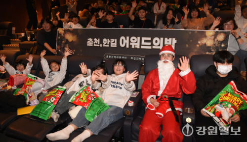 기자가 산타복장을 갖춰 입은 이유는 이날 춘천시 명동 롯데시네마에서 열린 춘천지역아동센터 주관 ‘춘천 어워드의 밤’ 행사장에 가기 위해서다.