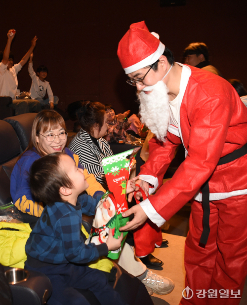 목적지인 행사장에는 산타의 등장을 기다리는 아이들로 가득했다. “조금 있으면 산타할아버지가 온다”는 선생님의 말에 아이들은 기대감에 부풀었고 잠시 뒤 산타가 등장하자 일제히 환호성을 터뜨렸다.