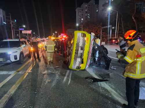 21일 오후 6시14분께 원주시 무실동 시청사거리 인근 도로에서 충북지역 구급대원이 몰던 구급차가 주행 중이던 승용차와 충돌해 전도됐다. 당시 구급차는 충북에서 다친 환자 50대 A씨를 이송 중이었던 것으로 알려졌으며, 이 사고로 A씨는 심정지 상태로 병원으로 옮겨졌다. 당시 구급차에 타고 있던 대원 3명과 A씨의 보호자 등 4명 역시 이송됐다. 경찰은 정확한 사고 원인을 조사 중이다.