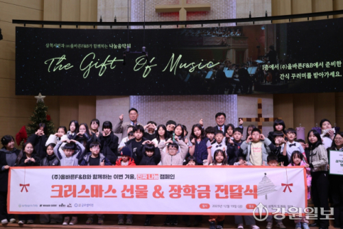 삼척시 지역아동센터연합회가 지난 19일 올바른에프앤비 지원으로 지역사회와 함께하는 음악회와 아동교육비, 난방비, 식품 등을 나누는 의미있는 행사를 열었다.