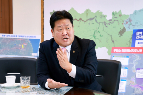 또 제5차 국가철도망 구축 계획에 태백선 영월~태백 구간 단선 직선화 사업이 반영될 수 있도록 최선을 다하고 있다. 당초 2028년 개통 예정이던 ITX-마음이 2023년 앞당겨 개통되며 태백 철도의 가능성을 시민들이 직접 체감하고 있다. 태백선 직선화가 실현되면 청량리에서 태백까지 2시간 이내로 단축돼 관광과 지역 경제가 자연스레 활력을 얻게 되고 태백이 주말 관광도시이자 체류형 도시로 한 단계 도약할 수 있다."