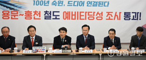 용문~홍천 광역철도사업이 기획재정부의 예비타당성조사를 통과한 가운데 22일 강원특별자치도청 브리핑룸에서 김진태 도지사, 유상범 국회의원, 김시성 도의장, 신영재 홍천군수, 박영록 홍천군의장 등이 기자회견을 열고 관련 내용에 대해 기자들의 질문에 답하고 있다. 박승선기자용문~홍천 광역철도사업이 기획재정부의 예비타당성조사를 통과한 가운데 22일 강원특별자치도청 브리핑룸에서 김진태 도지사, 유상범 국회의원, 김시성 도의장, 신영재 홍천군수, 박영록 홍천군의장 등이 기자회견을 열고 관련 내용에 대해 기자들의 질문에 답하고 있다. 박승선기자용문~홍천 광역철도사업이 기획재정부의 예비타당성조사를 통과한 가운데 22일 강원특별자치도청 브리핑룸에서 김진태 도지사, 유상범 국회의원, 김시성 도의장, 신영재 홍천군수, 박영록 홍천군의장 등이 기자회견을 열고 관련 내용에 대해 기자들의 질문에 답하고 있다. 박승선기자용문~홍천 광역철도사업이 기획재정부의 예비타당성조사를 통과한 가운데 22일 강원특별자치도청 브리핑룸에서 김진태 도지사, 유상범 국회의원, 김시성 도의장, 신영재 홍천군수, 박영록 홍천군의장 등이 기자회견을 열고 관련 내용에 대해 기자들의 질문에 답하고 있다. 박승선기자용문~홍천 광역철도사업이 기획재정부의 예비타당성조사를 통과한 가운데 22일 강원특별자치도청 브리핑룸에서 김진태 도지사, 유상범 국회의원, 김시성 도의장, 신영재 홍천군수, 박영록 홍천군의장 등이 기자회견을 열고 관련 내용에 대해 기자들의 질문에 답하고 있다. 박승선기자