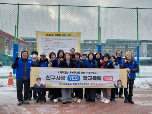 후평2동 바르게살기운동협의회(위원장:최경숙)는 지난 24일 부안초 앞에서 등교하는 학생들을 대상으로 건전하고 행복한 학교 생활 확립을 위한 학교폭력 예방 캠페인을 실시했다.