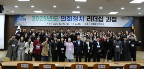 국회사무처 의정연수원은 지난 22일부터 24일까지 2박3일간 고성에 위치한 국회고성연수원에서 대학(원)생 48명이 참여한 가운데 '2025년도 의회정치 리더십 과정'을 실시했다. 올해로 3회차를 맞은 의회정치 리더십 과정은 정치와 의회에 관심 있는 대학생·대학원생을 대상으로 의회정치와 민주주의에 대한 이해를 높이기 위해 마련됐다. 또 리더십과 의사소통 역량을 높여 미래 사회를 이끌 인재를 양성하기 위한 취지다.
