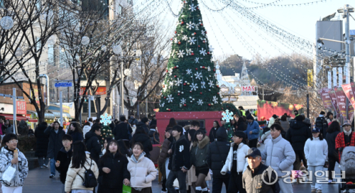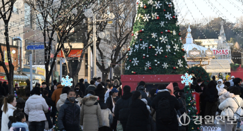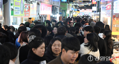 크리스마스인 25일 강릉 중앙시장이 나들이 나온 관광객들로 붐비고 있다. 강릉=권태명기자