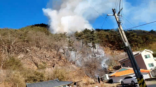 ◇26일 오전 10시33분께 강릉시 강동면 심곡리 55-6 야산에서 산불이 발생했다. 사진=강원도소방본부 제공.