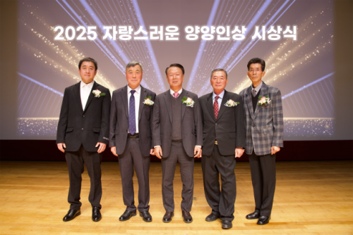 해오름문화복지재단은 26일 양양군문화복지회관에서 2025 자랑스러운 양양인상 시상식을 갖고 농업부문에 이창근씨, 축산임업부문에 이태우씨, 봉사부문에 김주혁씨와 정연수씨를 선정하고 상장을 수여했다. 올해 어수산업부문은 수상자를 배출하지 못 했다. 수상자에게는 각각 상금 1,000만원과 양양인상 금배지가 전달된다.