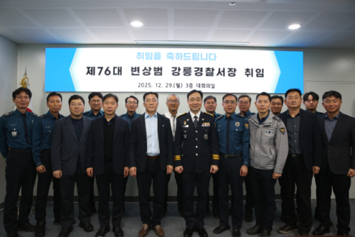 변상범 신임 강릉경찰서장은 29일 취임식을 갖고 본격적인 업무에 돌입했다. 변상범 서장은 “행복 가득한 강릉 경찰을 만들기 위해 때로는 앞에서 이끌고 때로는 옆에서 격려하며 때로는 뒤에서 든든하게 지원하겠다”고 밝혔다.