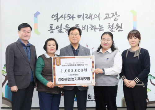 김화농협 농가주부모임은 29일 철원군청을 찾아 지역인재 육성을 위한 장학금 100만원을 철원장학회에 기탁했다.