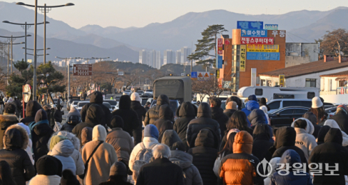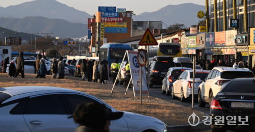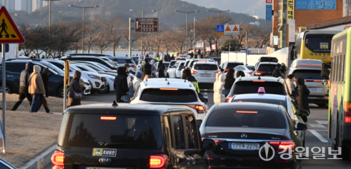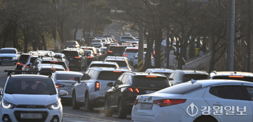 새해 첫날인 1일 강릉 경포해변 주변 도로가 해돋이를 보고 빠져나가는 인파와 차들로 큰 혼잡을 빚고 있다. 강릉=권태명기자