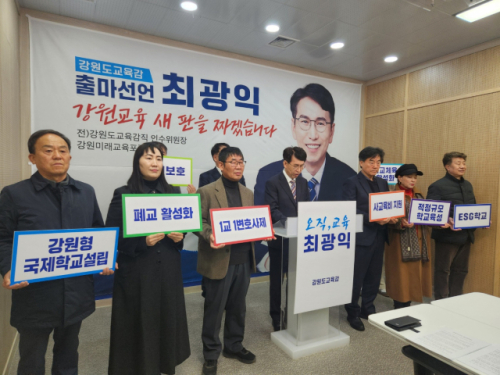 최 대표는 이날 오전 강원특별자치도교육청 1층 브리핑룸에서 기자회견을 열고 “우리 아이들의 내일을 지키고 강원교육의 새로운 100년을 열기 위해 강원도교육감 선거에 출마를 선언한다”고 밝혔다. 그는 최 대표는 “학생수 급감과 교육격차 심화로 학교 현장은 각종 민원과 갈등으로 신음하고 있지만 교육행정은 정치적 이념 논쟁에 휩싸여 갈 길을 잃고 표류했다"며 “부모의 경제력이나 사는 곳이 아이의 꿈을 제한하지 않는 오직 아이들의 행복과 성장이 기준이 되는 '진짜 교육'을 시작하겠다”고 출마 동기를 설명했다.