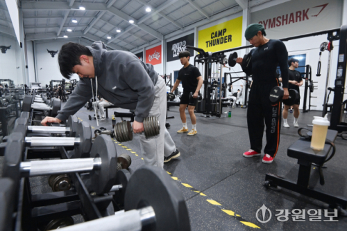 새해를 맞아 건강과 다이어트를 위해 운동을 시작하려는 시민들이 늘고 있다 . 5일 춘천시 동내면의 한 헬스장에서 회원들이 굵은 땀방울을 흘리며 운동 삼매경에 빠져있다.