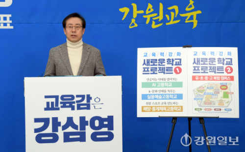 강 대표는 “강원교육의 가장 시급한 과제는 첫번째 지역 교육력 회복과 강화, 두번째 학생과 학부모가 만족하는 진로와 진학 성과”라며 “;새로운 학교 프로젝트'는 강원의 지리적 한계를 극복하고 인구 소멸위기에 처한 지역의 교육력을 회복해 다양하고 수준 높은 교육을 받을 수 있도록 하는 데 목표를 뒀다”고 설명했다. 그러면서 △AI고등학교 △실용예술고등학교 △동계·해양체육고등학교 △유·초·중·고 복합캠퍼스 설립 운영 등 구체적인 정책을 내세웠다.