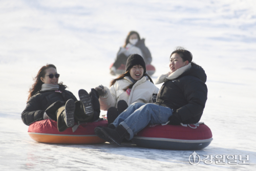 ■ 눈과 얼음 위에서 만나는 짜릿한 스릴=축제장에는 눈과 얼음을 만끽할 수 있는 체험 프로그램이 차고 넘친다. 화천천을 가로지르는 눈썰매장에서는 총연장 40m의 슬로프와 60m의 얼음판을 전용 튜브썰매를 이용해 빠른 속도로 내려오는 잊지 못할 경험을 할 수 있다. 얼음썰매 체험존에서는 우리나라 전통 얼음썰매, 화천군이 직접 만든 가족형 얼음썰매를 체험할 수 있다.
