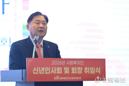 강원특별자치도사회복지협의회의 ‘2026년도 사회복지인 신년인사회 및 제14대 회장 취임식’이 8일 춘천 스카이컨벤션에서 개최됐다. 도내 사회복지인들의 노고를 치하하고, 지역복지 공동체를 구축하기 위해 마련된 행사에는 도내 18개 시·군 사회복지협의회를 비롯한 종사자들이 참석했다.
