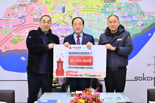 대한주택관리사협회 속초지부(지부장:장동식)는 8일 속초시청을 방문, 지역 내 취약계층 지원을 위한 성금 126만원을 시 이웃연대 희망나눔기금으로 적립했다.
