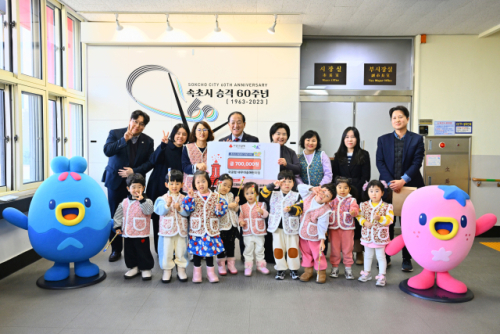 국공립 대우이솝어린이집(원장 김혜숙) 원생 일동은 8일 속초시청을 방문, 어린이집 자체 이웃돕기 캠페인을 통해 마련한 30만원의 후원금과 40만원 상당의 물품 등 총 70만원 상당의 성금품을 기탁했다.