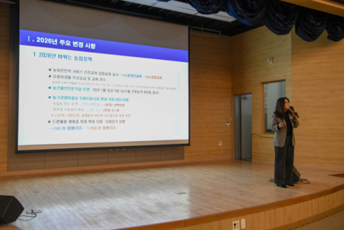 2026년 새해 농업인 실용교육이 8일 양구군친환경농업연구센터 대강당에서 주요 내빈과 지역 농가들이 참석한 가운데 열려 새해 영농 방향과 실질적인 농업 정보를 공유하는 시간을 가졌다.