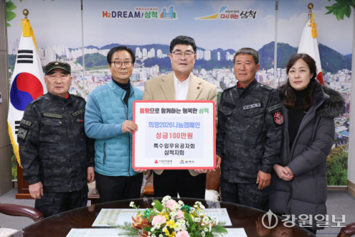 특수임무유공자회 삼척지회(지회장:박주희)는 지난 9일 이웃돕기 성금 100만원을 삼척시에 기탁했다.