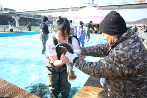 이번 축제는 오는 25일까지 이어지며 눈 썰매장, 송어 맨손잡기 체험장도 운영된다.
