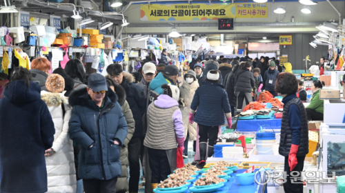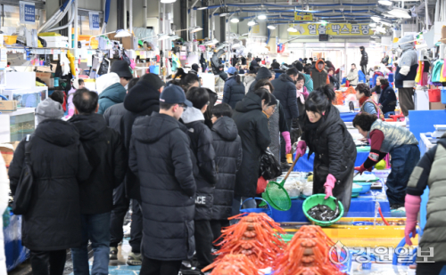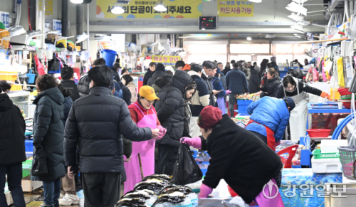 11일 강릉시 주문진 수산물좌판풍물시장에는 주말을 맞아 싱싱한 수산물을 구입하려는 관광객들로 붐비고 있다. 강릉=권태명기자