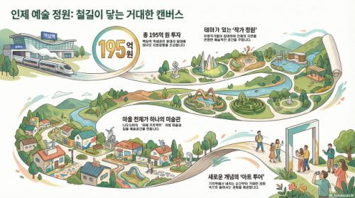 인제군은 백담역 역세권인 용대리 일대에 195억 원을 투입해 ‘지방정원’을 조성한다. 이곳은 유명 작가들이 참여해 인제의 식생과 기후를 반영한 ‘리틀 포레스트’, ‘식물학자의 실험실’ 등 테마가 있는 ‘작가 정원’으로 꾸며진다. 나오시마의 ‘이에(家) 프로젝트’가 버려진 집을 예술로 채워 마을 전체를 미술관으로 만든 것 처럼, 인제군은 백담사로 이어지는 8.2km의 길과 마을 전체를 정원화해 ‘머무는 예술 마을’을 지향한다. 기차에서 내리는 순간, 역사가 아닌 거대한 정원 속으로 들어서는 경험이 철도망 확충으로 그릴 수 있는 미래의 강원도형 아트 투어라고 할 수 있다.