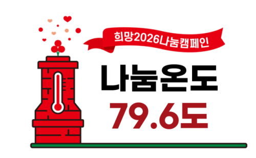 강원사회복지공동모금회가 진행하는 ‘희망 2026 나눔캠페인’ 사랑의 온도탑 수은주가 14일 79.6도를 기록하고 있다.
