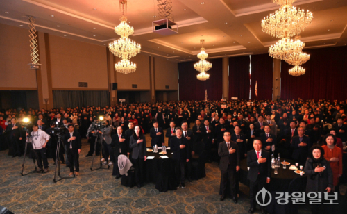 도당 신년인사회는 이날 호텔인터불고 원주에서 이철규(동해-태백-삼척-정선) 도당위원장, 한기호(춘천-철원-화천-양구을)·박정하(원주갑)·이양수(속초-인제-고성-양양)·유상범(홍천-횡성-영월-평창) 국회의원, 정점식(경남 통영시고성군) 중앙당 정책위의장, 염동열 전 국회의원, 김혜란 춘천갑 당협위원장을 비롯해 김진태 도지사, 김시성 도의장, 시장·군수 및 지방의원 등 선출직, 당직자, 지방선거 출마예정자, 당원 등 2,000여명이 참석한 가운데 열렸다.
