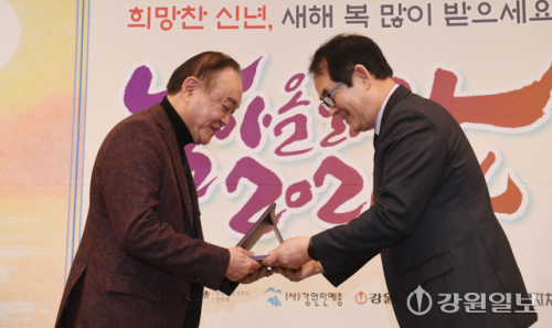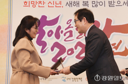 이날 열린 시상식에선 단편소설 부문 오혜(조각들), 시 부문 배종영(마트로시카), 동화 부문 황명숙(점 빼주는 사서 선생님), 동시 부문 박양미(열려라 바위!). 희곡 부문 전윤수(강릉 96) 당선자들에게 당선패와 함께 총 1200만원이 상금이 전달됐다. 이어서 열린 신년교례회는 도내 문화예술인을 비롯한 각급 기관·단체장들이 참석한 가운데 열려 문화와 예술로 더욱 풍요로운 한 해가 되기를 한마음으로 기원하는 자리로 마련됐다. 특히 ‘2025~2026 강원방문의 해’의 성대한 막을 올리고, 병오년을 강원 문화가 강원 관광의 부흥을 견인하는 한 해로 만들어 가자는 의지를 다졌다. 한편 이날 축하공연으로 초청된 강원자치도 고향사랑기부제 홍보대사인 가수 임지훈 씨가 100만원의 고향사랑기부금을 김진태 지사에게 전달하고 팬심을 밝힌 김 지사와 무대위에서 즉석 합동 공연을 펼쳐 큰 호응을 얻었다.