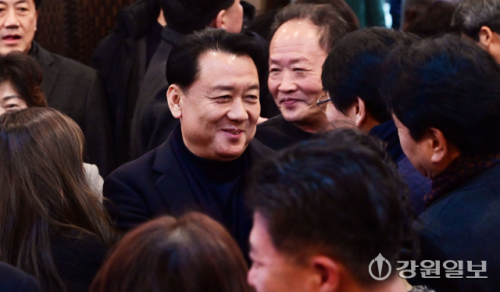도지사 선거 주자로 거론되는 이광재 전 도지사도 3년 만에 도당 신년인사회를 찾아 당원들과 인사를 나눴다.