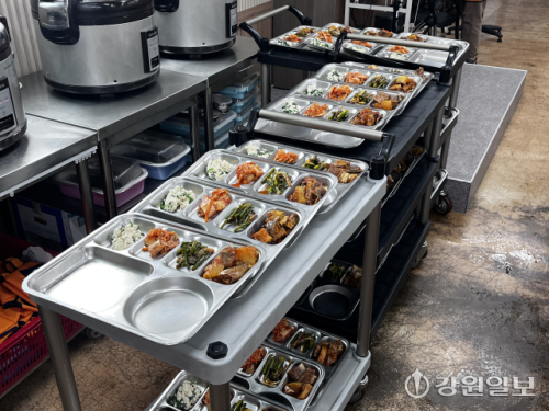 급식 조리를 담당하는 변선자 씨는 “어르신들의 활기찬 모습을 보면 마음이 좋다. ‘잘 먹고 간다’는 한마디가 큰 보람”이라고 말했다. 배식을 돕던 황다빈(21·한림성심대 간호학과)학생은 “다섯 번째 봉사라 더 가깝게 대해주셔서 뿌듯하다”며 “자원봉사자가 점점 줄어든다고 해 다음에는 친구를 데려올 예정”이라고 했다.