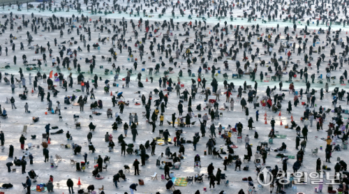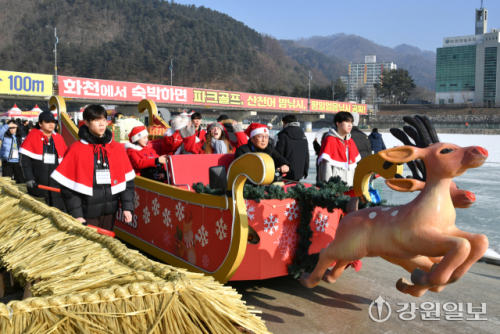 【화천】화천산천어축제장에서 진짜 산타가 등장하며 축제 분위기가 최고조에 달하고 있다. 짜릿한 손 맛을 낚는 구름인파가 몰리며 이번 주말에 누적 관광객 60만 돌파가 예고되고 있다.