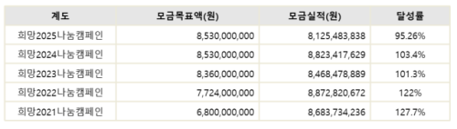 지난해 역시 사랑의온도탑 수은주가 95.26도에 멈추며 목표 달성을 실패한 만큼, 2년 연속 강원지역 사랑의 온도탑 미달성이 우려되는 상황이다. 실제로 강원자치도의 모금 달성률은 2021년 127.7도, 2022년 122도, 2023년 101.3도, 2024년 103.4도로 지속적인 감소세를 보이고 있다.