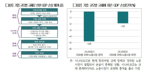 기업 규모별 규제가 기업 성장을 억제하고, 결국 자원 배분의 비효율과 임금 경직성을 초래해 GDP 손실로 이어진다는 주장이다.