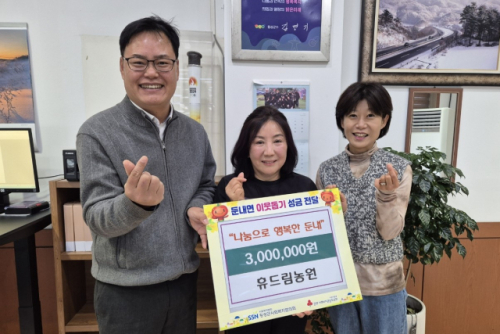 ◇횡성군 둔내면 휴드림농원(대표:박나현)은 22일 둔내면행정복지센터를 방문해 지역 내 저소득 취약계층 아동·청소년 지원을 위한 성금 300만원을 기탁했다.