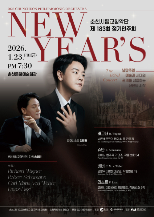 피아니스트 김태형이 춘천시립교향악단과 호흡을 맞춘다. 김 피아니스트는 23일 춘천문화예술회관에서 열리는 춘천시향의 ‘제183회 정기연주회’ 무대에 협연자로 오른다. 송유진 지휘자를 따라 김 피아니스트와 춘천시향은 독일 음악의 낭만주의를 이끌었던 4명의 작곡가의 작품을 연주한다.