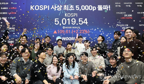 이 대통령은 "국장 투자의 매력을 높여 부동산 자금을 주식으로 이전하는 흐름을 가속할 것"이라며 "퇴임하는 날까지 코스피 5,000 달성을 위해 1천400만 개미 투자자와 함께하겠다"고 했다고 강유정 대통령실 대변인이 전했다.