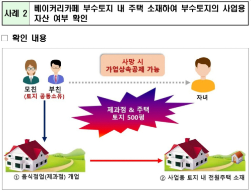 예를 들어 부부가 함께 운영하는 베이커리카페의 토지 안에 부부가 거주하는 전원주택이 들어서 있다면 이는 공제 대상인 가업상속재산으로 볼 수 없다.