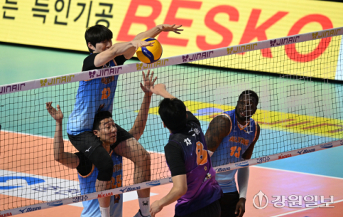 25일 춘천 호반체육관에서 열린 '진에어 2025~2026 V-리그 올스타전'에서 K-스타 팀의 레오(현대캐피탈)가 공격을 시도하고 있다. 박승선기자25일 춘천 호반체육관에서 열린 '진에어 2025~2026 V-리그 올스타전'에서 K-스타 팀의 레오(현대캐피탈)가 공격을 시도하고 있다. 박승선기자25일 춘천 호반체육관에서 열린 '진에어 2025~2026 V-리그 올스타전'에서 K-스타 팀의 레오(현대캐피탈)가 상대의 공격을 블로킹하고 있다. 박승선기자25일 춘천 호반체육관에서 열린 '진에어 2025~2026 V-리그 올스타전'에서 K-스타 팀의 베논(한국전력)이 공격을 시도하고 있다. 박승선기자25일 춘천 호반체육관에서 열린 '진에어 2025~2026 V-리그 올스타전'에서 K-스타 팀의 김진영(현대캐피탈)이 신영석(한국전력)의 어깨위에 올라타 상대의 공격을 블로킹 하고 있다. 박승선기자25일 춘천 호반체육관에서 열린 '진에어 2025~2026 V-리그 올스타전'에서 V-스타 팀의 이상현(우리카드)이 공격을 성공시킨 후 동료들과 기뻐하고 있다. 박승선기자25일 춘천 호반체육관에서 열린 '진에어 2025~2026 V-리그 올스타전'에서 K-스타 팀의 이우진(삼성화재)가 공격을 시도하고 있다. 박승선기자